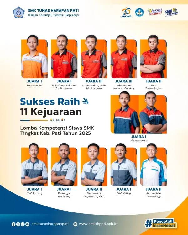 Berikut adalah daftar prestasi SMK Tunas Harapan Pati dalam LKS SMK Tingkat Kabupaten Pati tahun 2025 yang berhasil diraih: